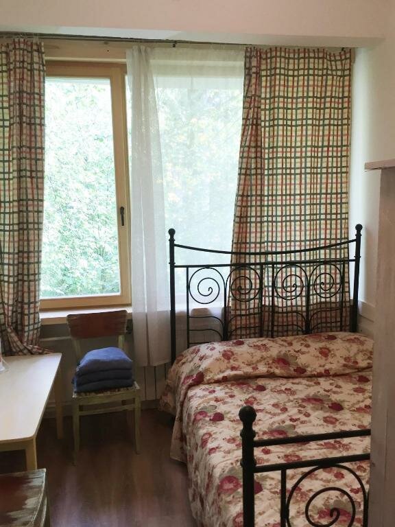 Я много ездил по командировкам и много где жил. За номер в этом чудесном месте отдал 3000 рублей. Это не много, но лучше подумайте о квартире посуточно. Из плюсов — в номере есть кровать и чистое постельное белье. Из минусов. Старый жилой фонд, и всего одна розетка в номере. Ну и самое главное. Если вы едете ночью, позвоните и узнайте как их найти заранее. Без этого будете плутать. Т. К. Телефон после 22 они не берут