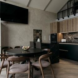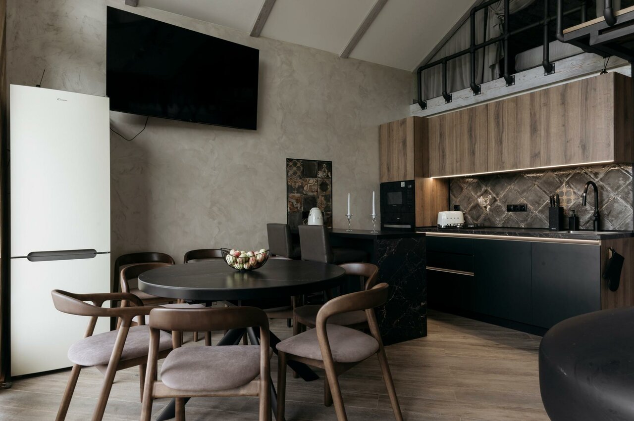 Классное место и для мероприятий и для выходных в уединении на кухне есть даже нож для резки пиццы, форма для пирогов, лед в морозилке, Алиса, телевизор с выходом в интернет, вооьщем все что душе угодно