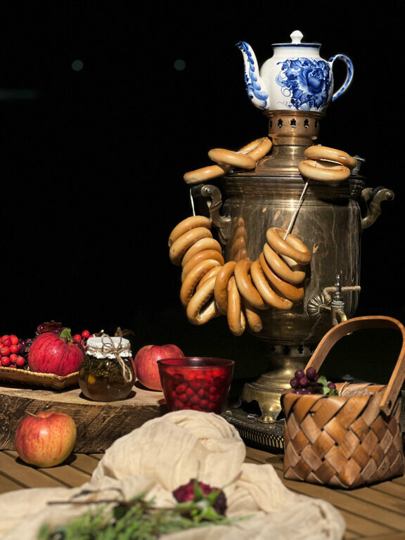- Вкусные угощения (чай, мёд, варенье).