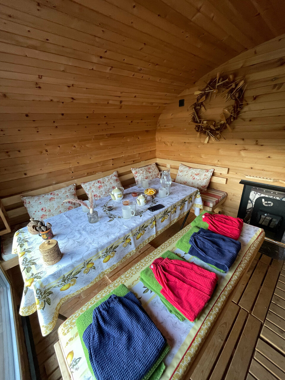 Отдыхали парой , в этом прекрасном , атмосферном месте. Мы влюбились в него с первого взгляда, с первой минуты . Хозяева большие молодцы, люди с идеальным вкусом и добрым сердцем. Всё продумано до мелочей. Мне для полного счастья не хватило кухонных весов) после чего Вера (хозяйка ), тут же их заказала. Напарились в замечательной бане, с дубовым веником, чаем, настоящим медом и вкуснющим вареньем. Отдохнули на все 100%. Обязательно вернемся сюда ещё.